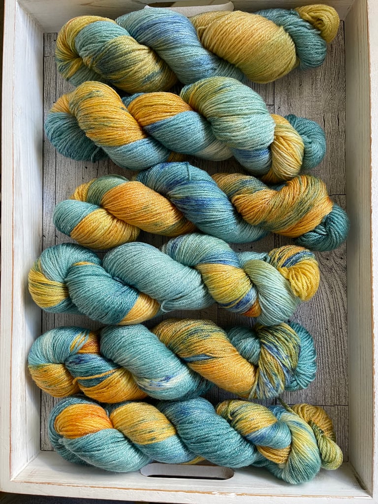 The beauty of hand dying is each hank has its own unique color. No two hanks are alike.