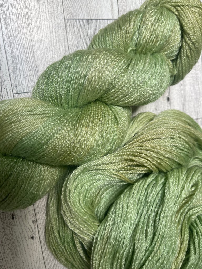 The beauty of hand dying is each hank has its own unique color. No two hanks are alike.